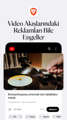 Brave hızlı bir internet tarayıcıdır! Brave sayfa yükleme süresini azaltır, internet gezinme performanısı artırır ve kötü amaçlı yazılım içeren reklamları bloklar.